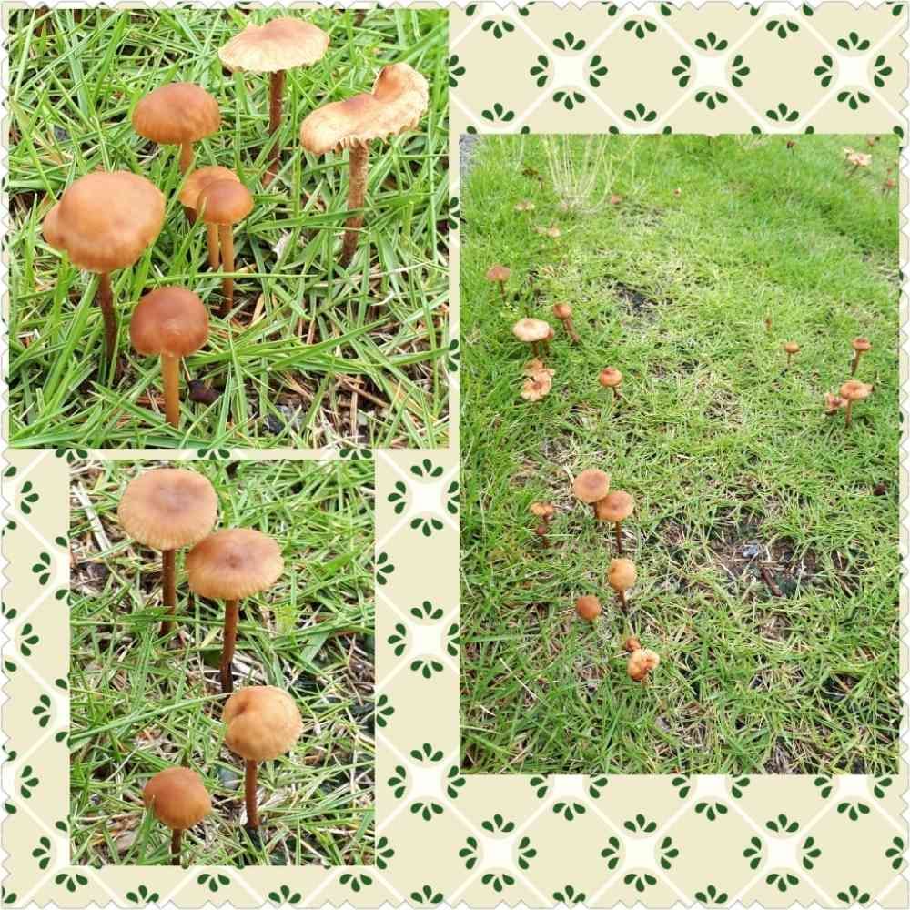 芝生に無数のキノコ。