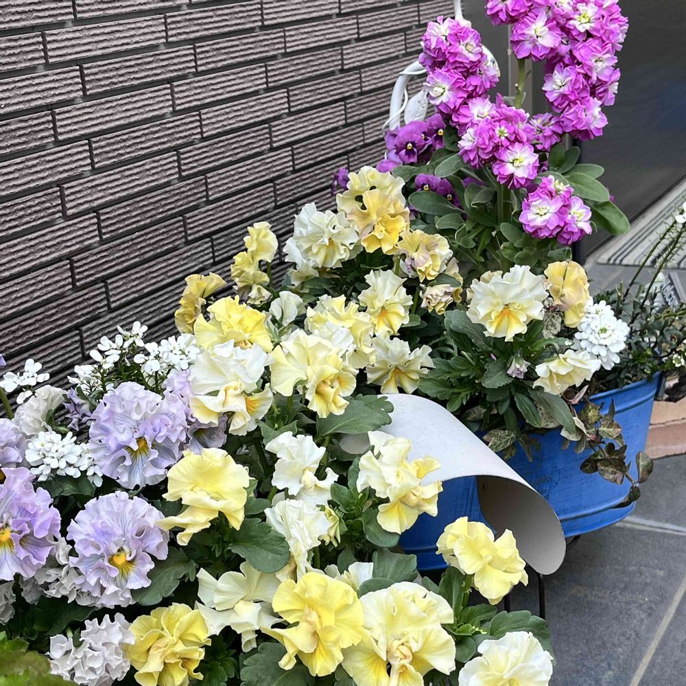 3枚目は寄せ植えのビオラたちがモリモリフリフリ💛💜