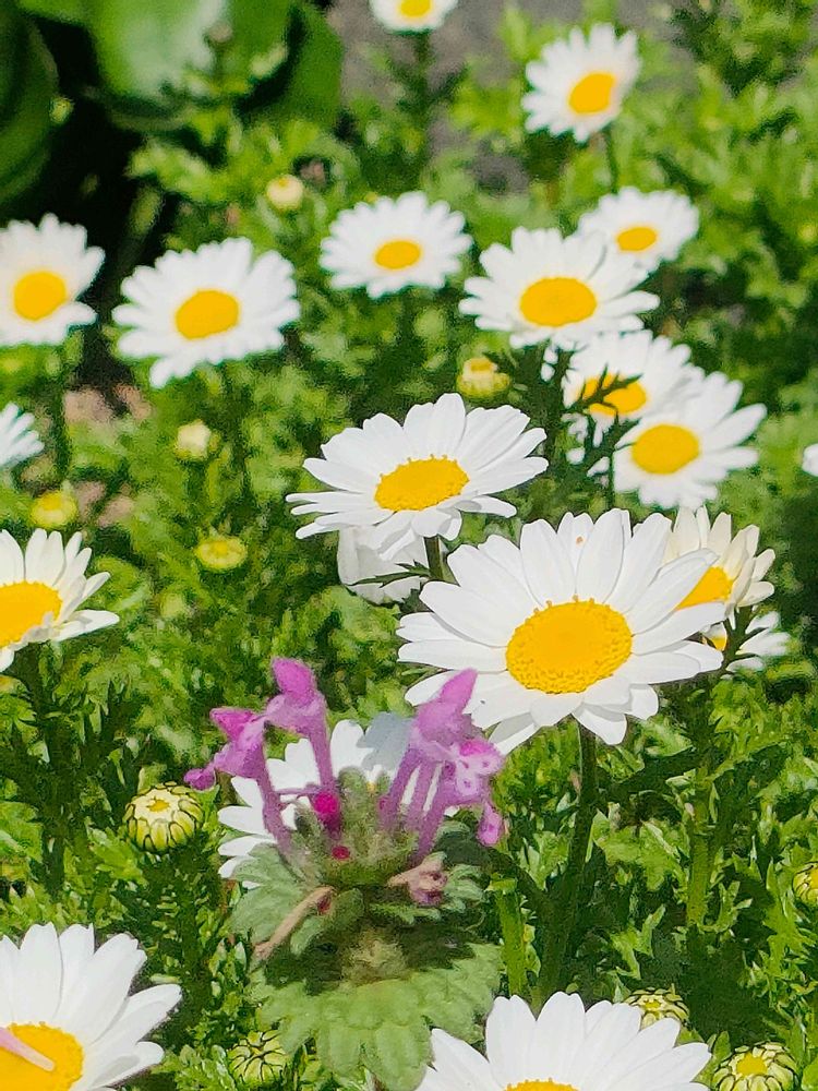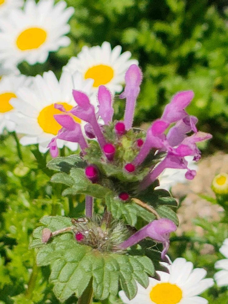 去年のこぼれ種で育ってるノースポールの中にホトケノザのお花も咲きました。
