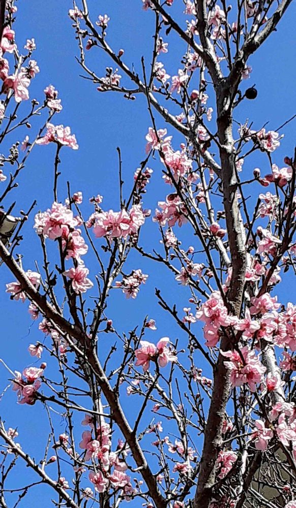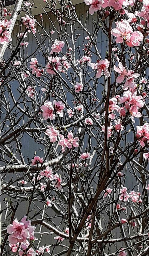 庭の(桃)の💠が暖かさで満開です🌸🌸🌸🌸