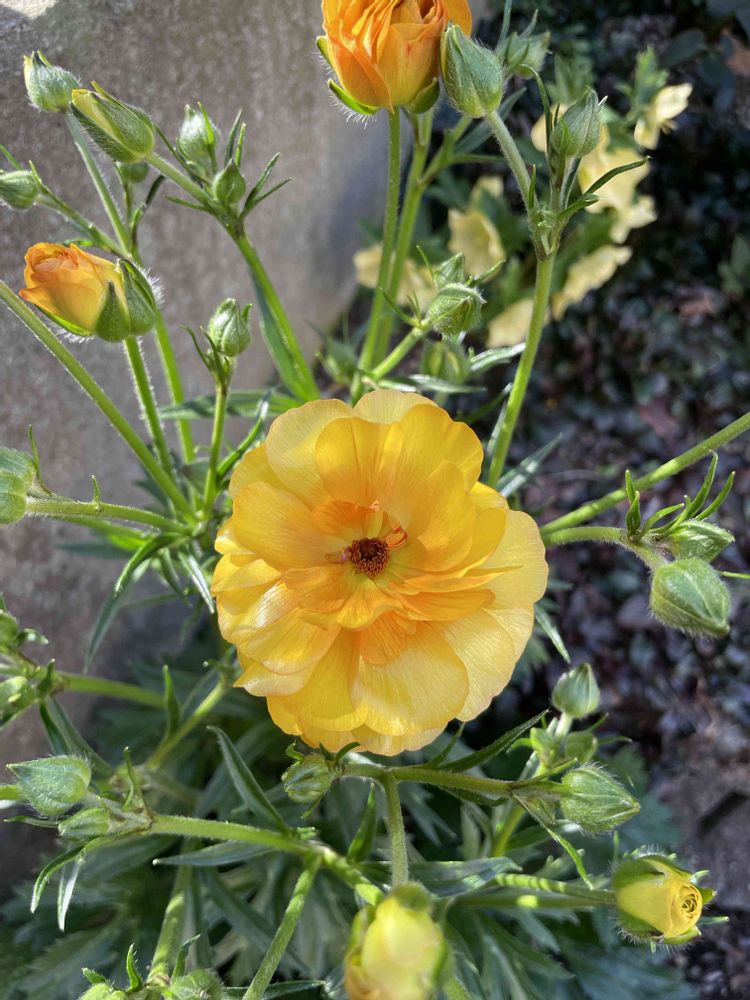 クリスマスローズも徐々に花切りを始めました、いつもこの時期は少し😿寂しいですね。でも、クリローに代わってラナンキュラスラックスの第一号花が咲いてくれました😊