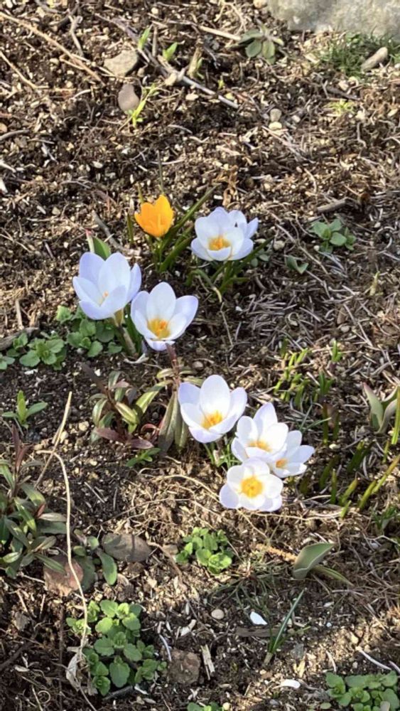 🌝🌝 春の訪れを告げる花の一つであるクロッカス。鮮やかな紫色の小さな花びらが、太陽の光を浴びて輝いていますね。