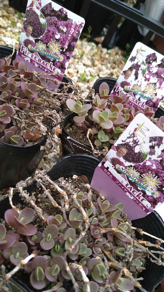 セダム ファイヤークラッカー 枯れた状態のカスカスのポットで、無料コーナーにありました。セダムやから、もしかして、芽がでるんじゃないか!?と思って持ち帰り、庭に置いていましたら、うふふ❤生えてきました〜❤うれしいうれしい(≧∇≦)b