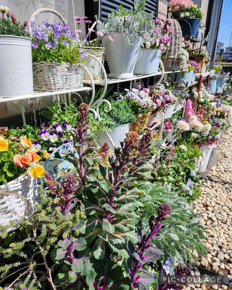お花達モリモリ元気に育って葉牡丹もお花が咲きそうで