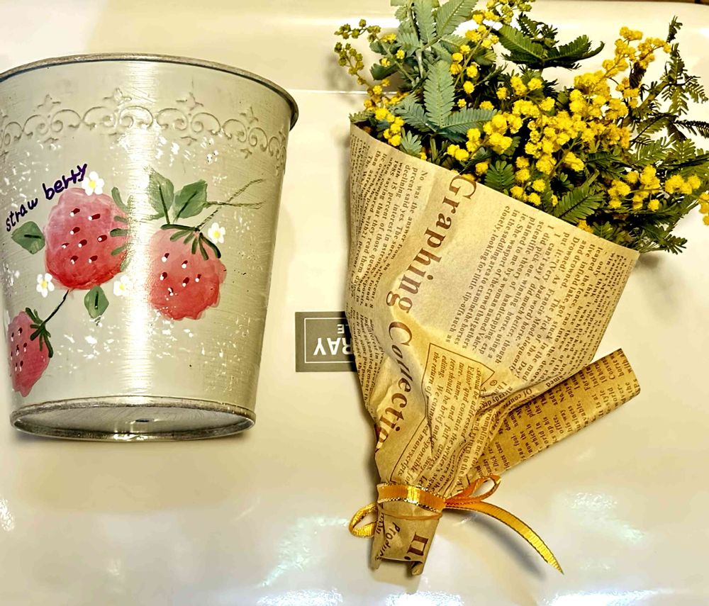 素敵なトールペイントの鉢と可愛いミモザと✨