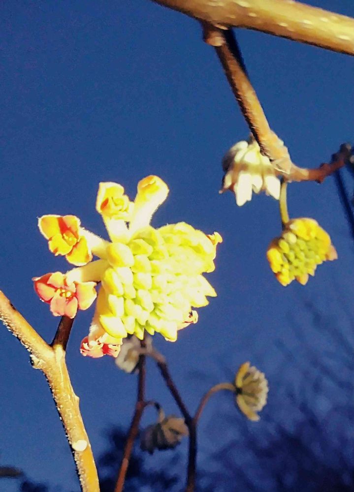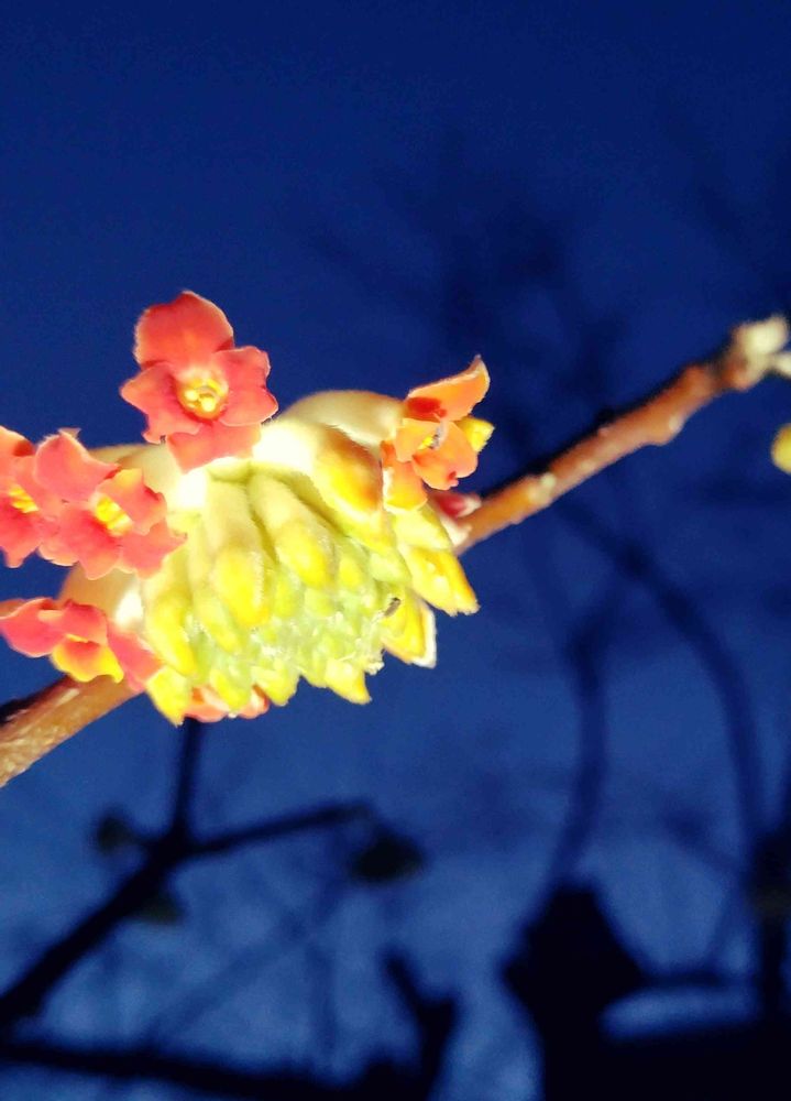 暮れなずむ 空色が … オレンジの花と 相まって …