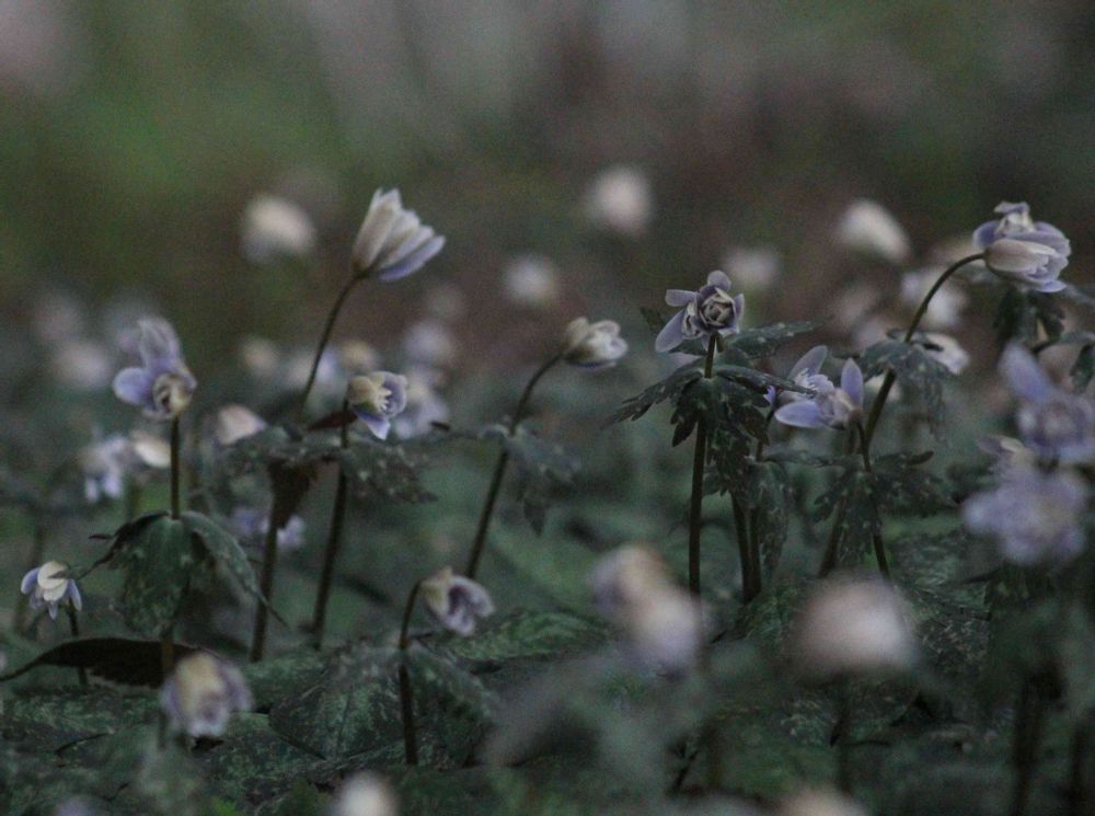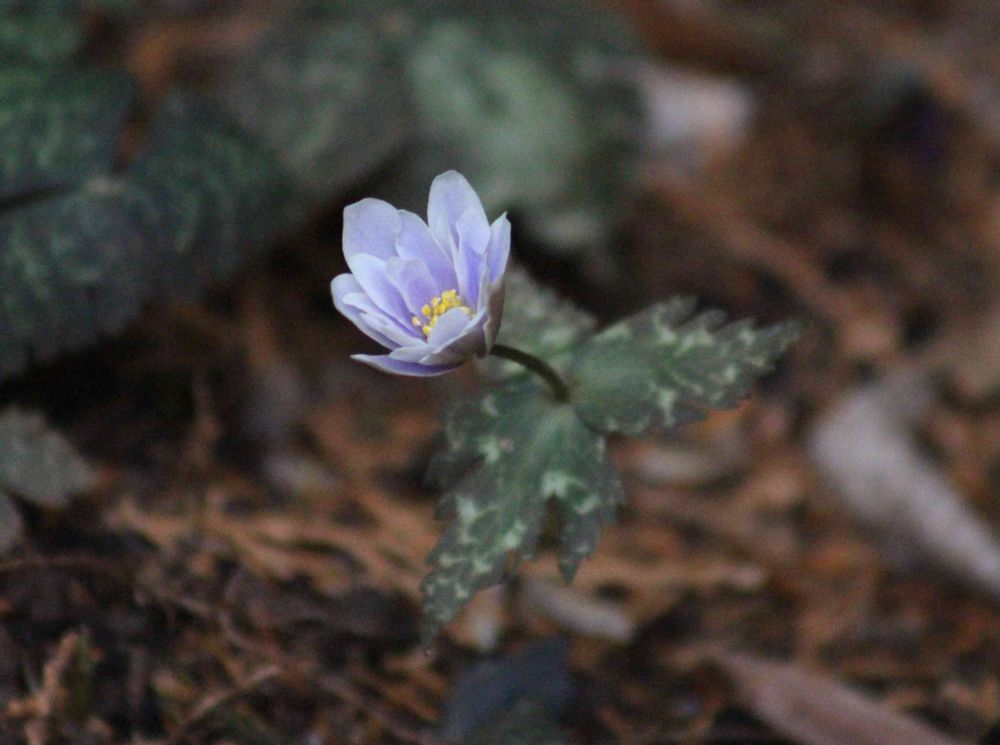 日差しの下で開花するユキワリイチゲですから曇り空の下では蕾のようでした。