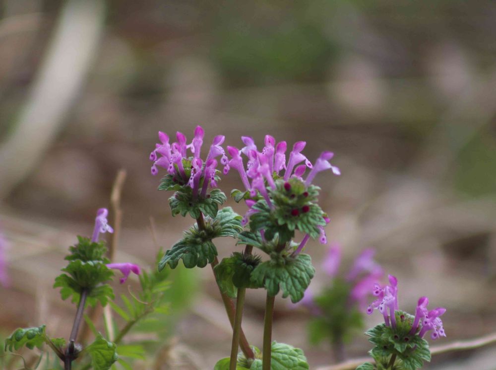 ④ユキワリイチゲと反対側の土手にホトケノザ