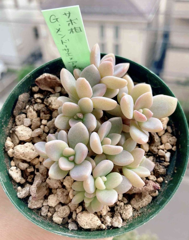 SNSで相互のasatomoさんから頂いた子を葉挿ししたらこんなにモリモリのかわい子ちゃんになりました🥰
