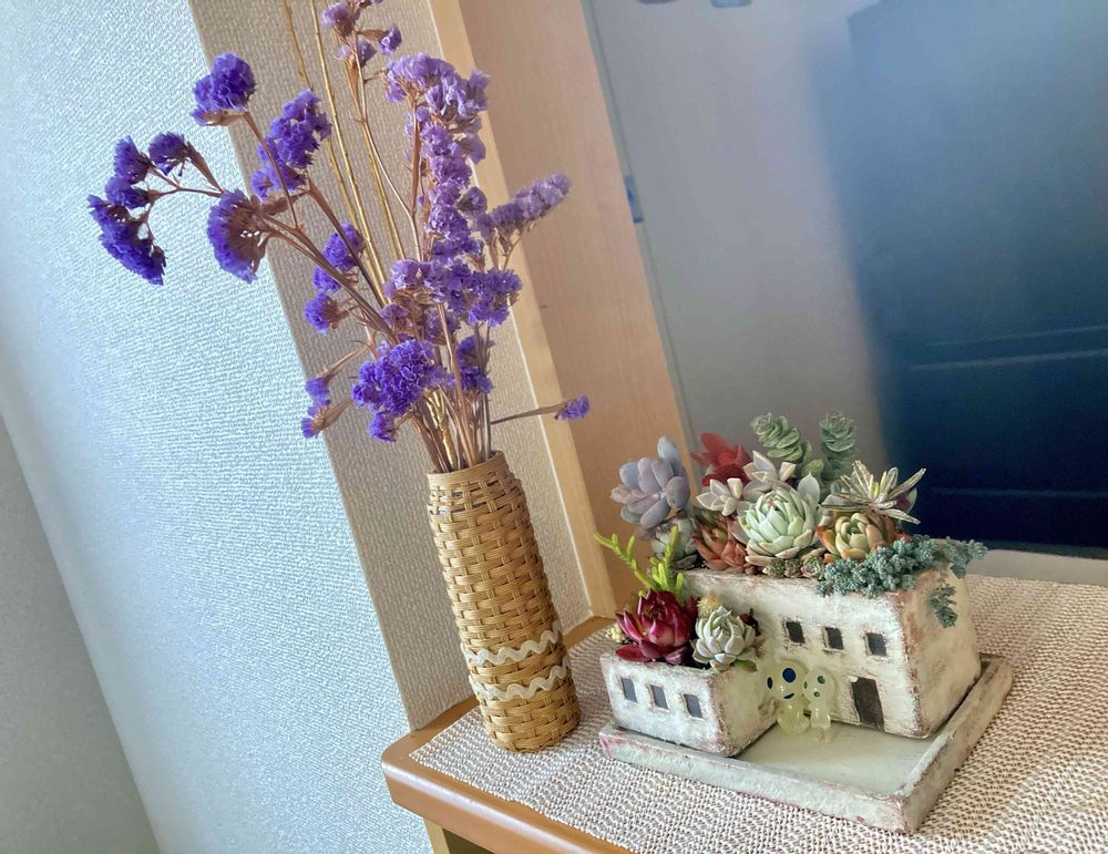 ⑤そして、県外にでた歳の離れた妹にプレゼント♡なんと!一緒に写してるクラフトテープの花瓶(と言っていいのか💦)これ、10数年前に家を出る時私が作ったやつやん😭✨