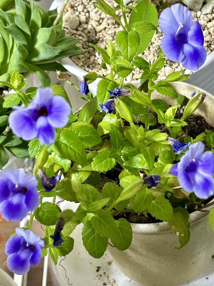 スーパートレニア ブルーリバーを窓辺に置いて冬越しさせています🤗