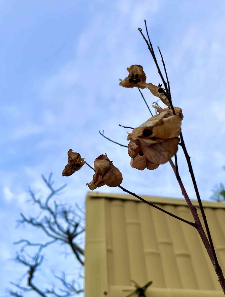 秋には赤いかわいい実(3枚目)でしたが、さらにカラカラに乾いて軽くなりました。準備はOK。風にのって飛んでいけるかな?