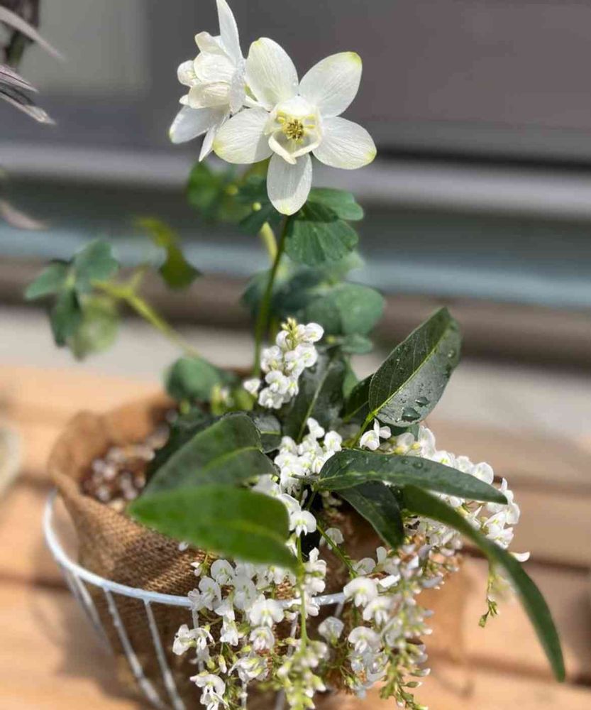 去年の小さなハーデンの株(3枚目です)が、立派に成長して、門扉を飾るハンギングになってくれました。