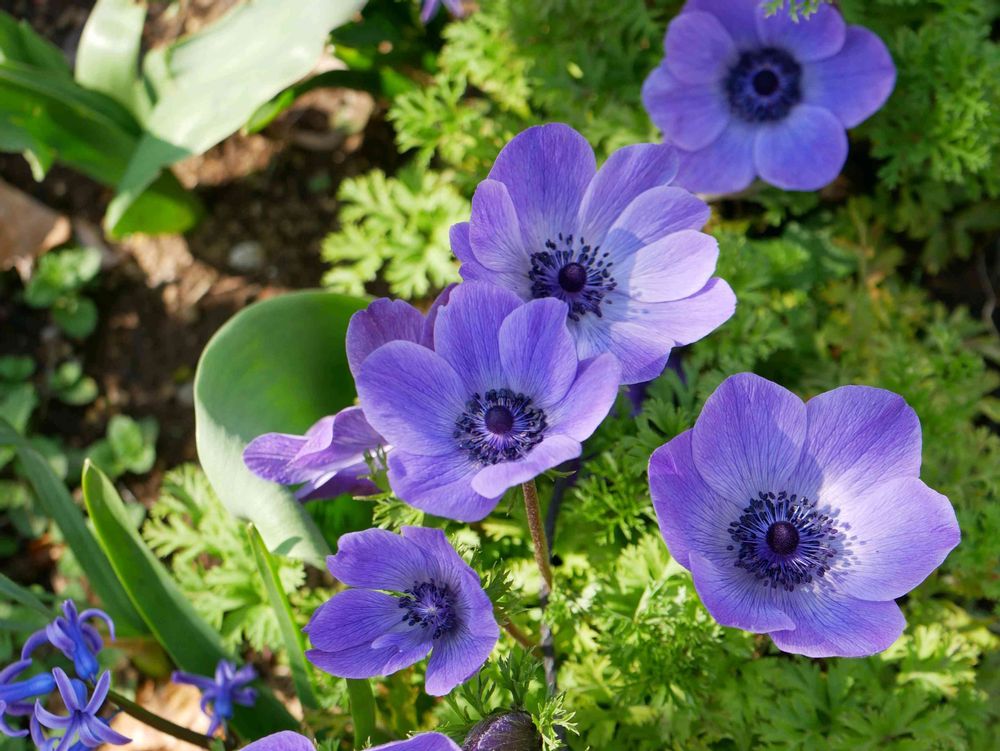 八重咲きのアネモネに次いで、一重も咲いてきました💙💜