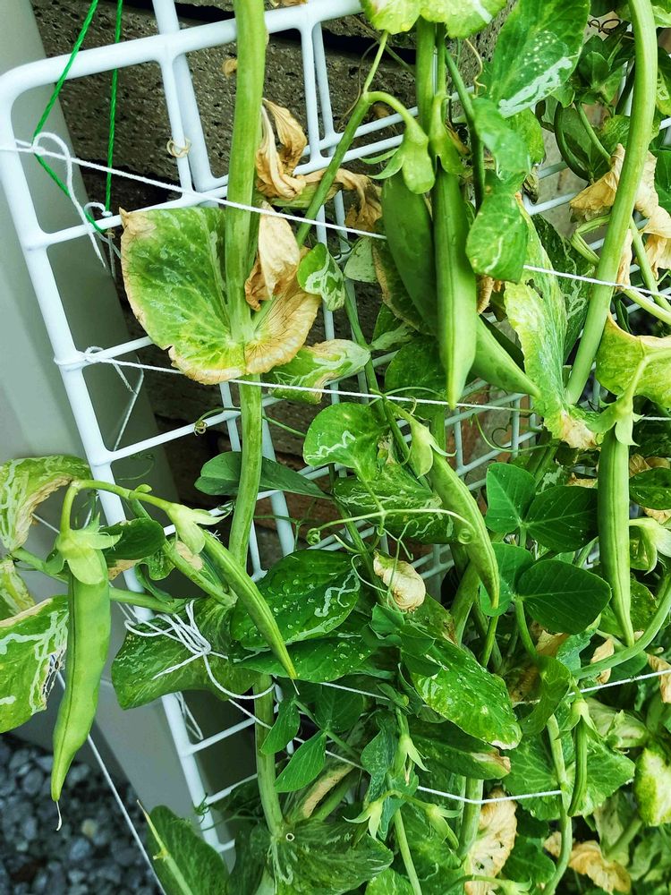 スナップエンドウ霜で痛んだり色々とトラブルにあいましたがようやくちゃんとしたのが食べられそうです。