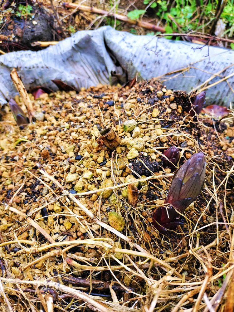 デカイつくしが出てるwと思ったら、オリエンタルリリーでした。この辺りにカサブランカやコンカドールなどオリエンタルリリーをまとめて植えたのですが、無事に出てきてくれてほっとしています。