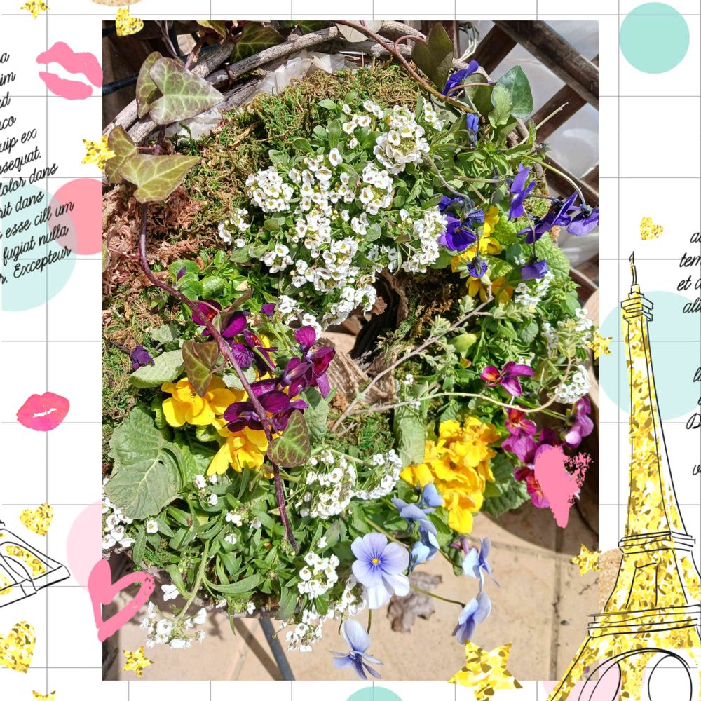 リースの寄せ植えは、可愛い花が沢山入っていて豪華版ですね🩷💛🤍💚🩵