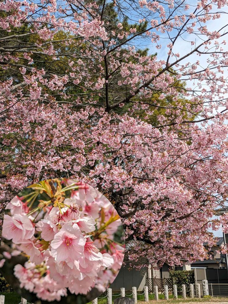 ナニ桜かわからないですけど、早咲きで 色が少し濃い目の🌸 綺麗です😊🎶