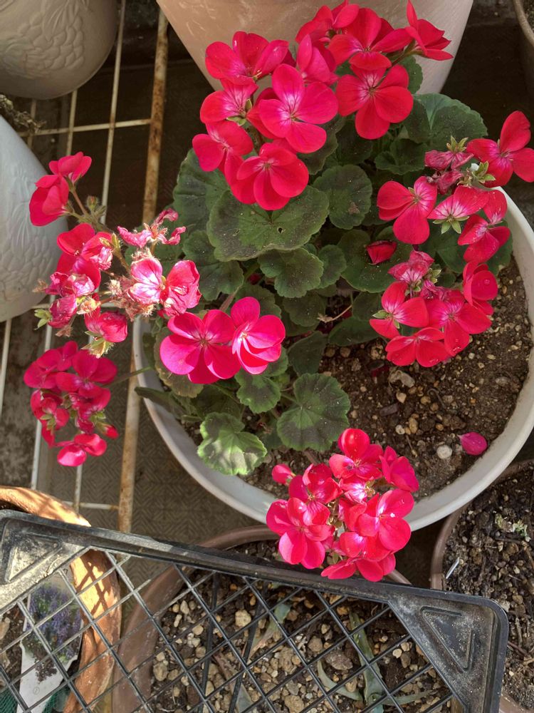 ゼラニウムさんたちが冬の寒さにもめげずに咲いてくれてます❤️🩷❤️ 2番目と3番目は1つの鉢🪴で何故か2色🩷❤️咲いてるので嬉しいです😊