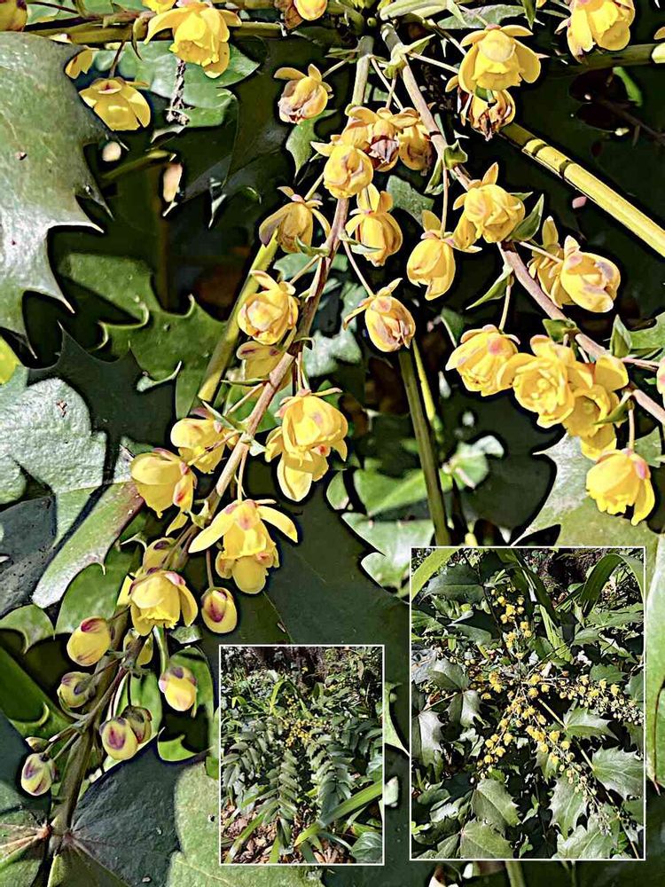 ヒイラギナンテン(柊南天),/沢山の小さな黄花が、枝垂れ鋭い鋸歯の複葉群の中/の投稿画像