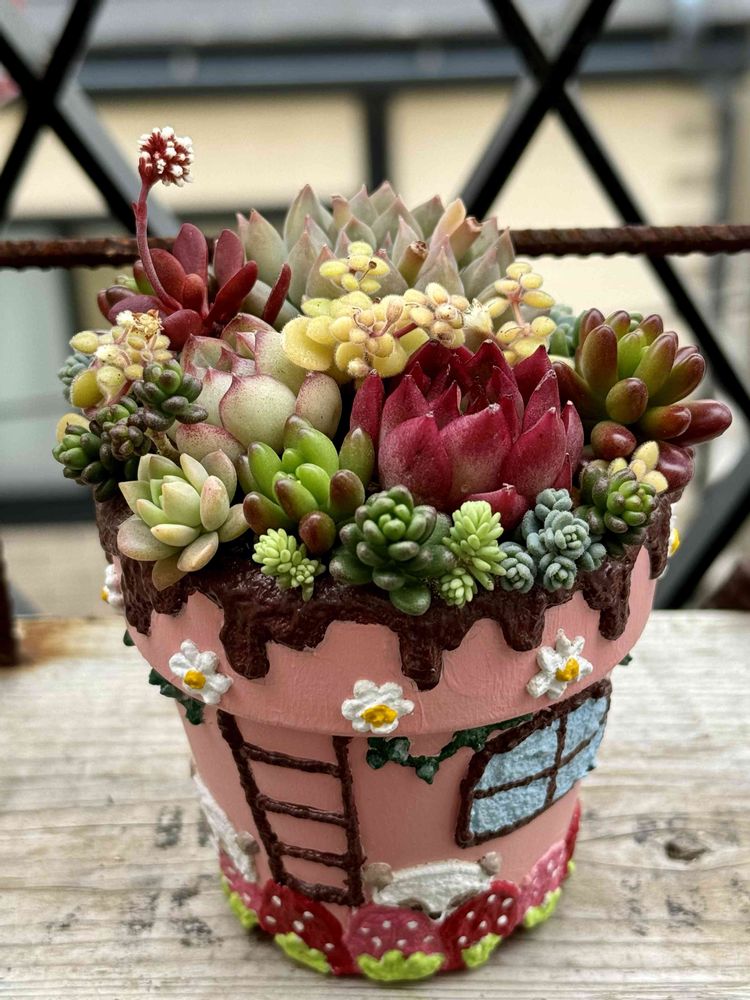 凄い可愛い鉢ですね😍寄せ植えも素敵💕