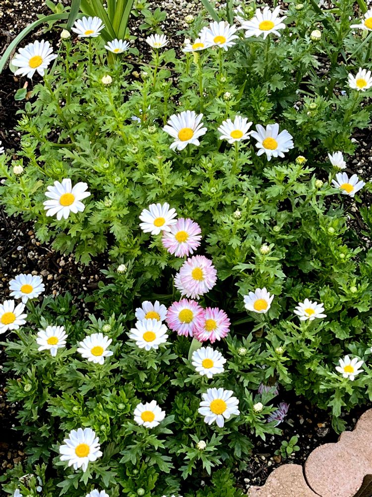 花壇の隅っこに植えたノースポールの中に、一株だけデージィが有りました😅
