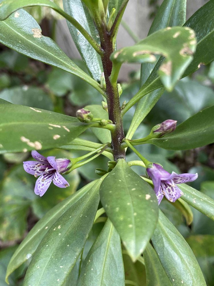 葉っぱは沈丁花🌿で紫のお花が可愛いですね(*^ω^)