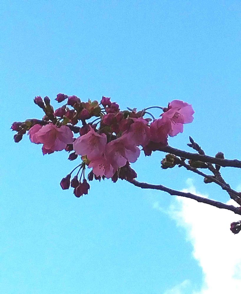 向かいのお宅の桜の花が咲き始めました。