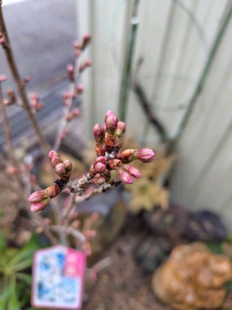 今年植えた啓翁桜が芽吹いていました。冬に逆戻りの感じが強くても着実に春は来ているんですね~