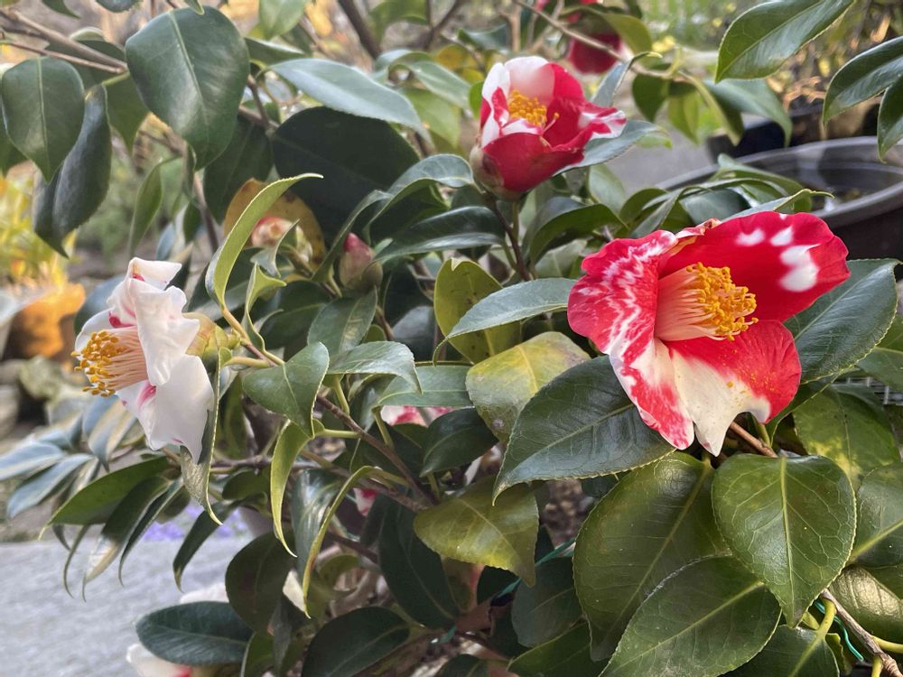 艶っぽい紅白の花。白無地、赤無地、斑入りと盛り沢山❤️
