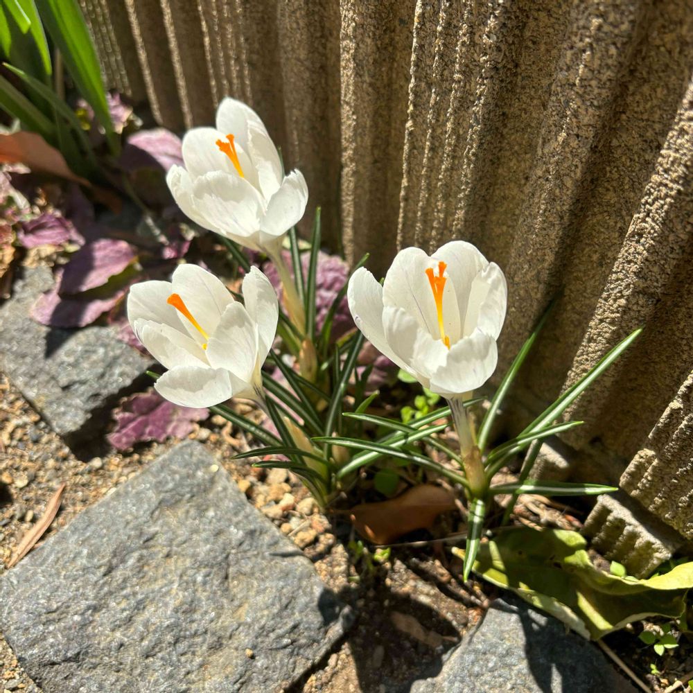 いつの間にか咲いていた息子がシロッカスと呼ぶクロッカス。