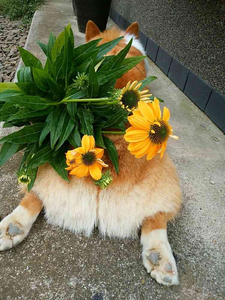マロちゃんのぷりぷりなお尻に綺麗な花💐😆