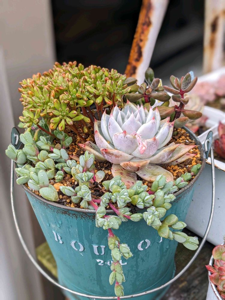 色と形が可愛くて購入した鉢に寄せ植え💞