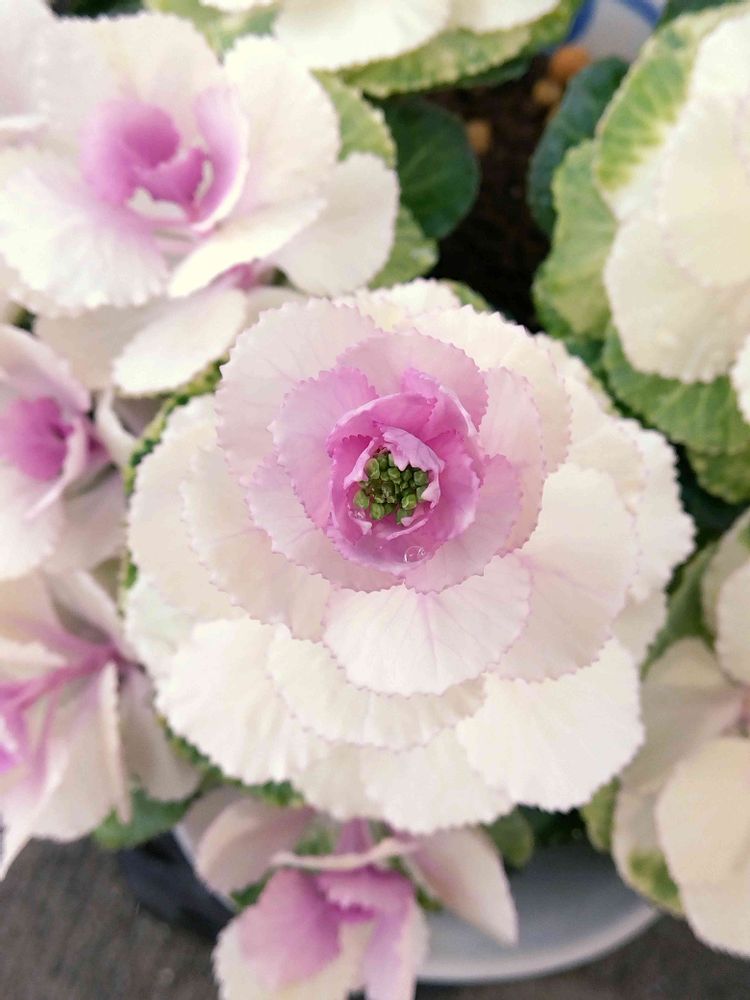 悪天候の中 バレリーナみたいな ハボタン♡〰😍何時までも楽しめますよね~🥳🎶