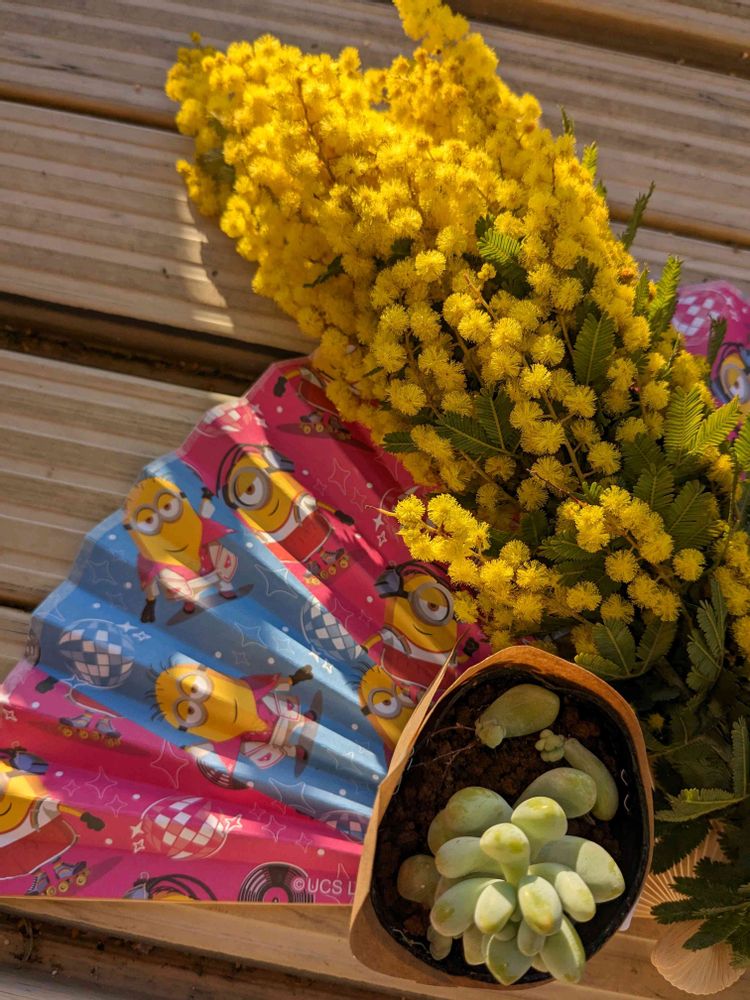 今日のお出掛け先で、切り花として売られてたミモザ💛可愛かったので💕迷わず購入🥰