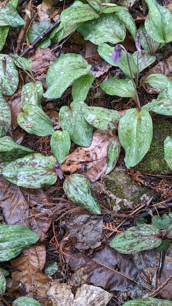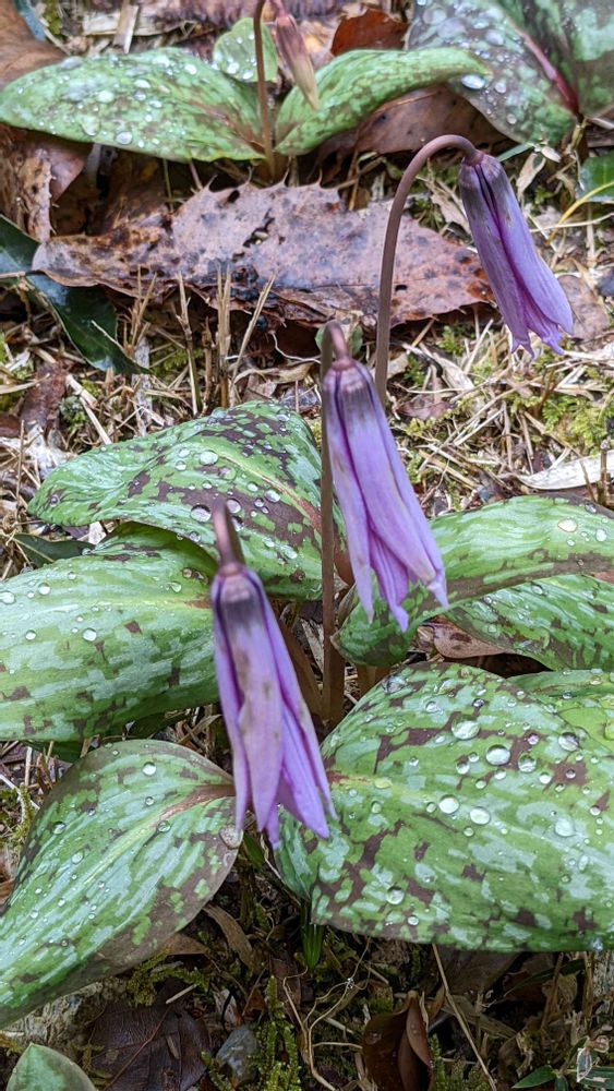 カタクリのお花は開いていませんが斑入りのような葉が素敵です