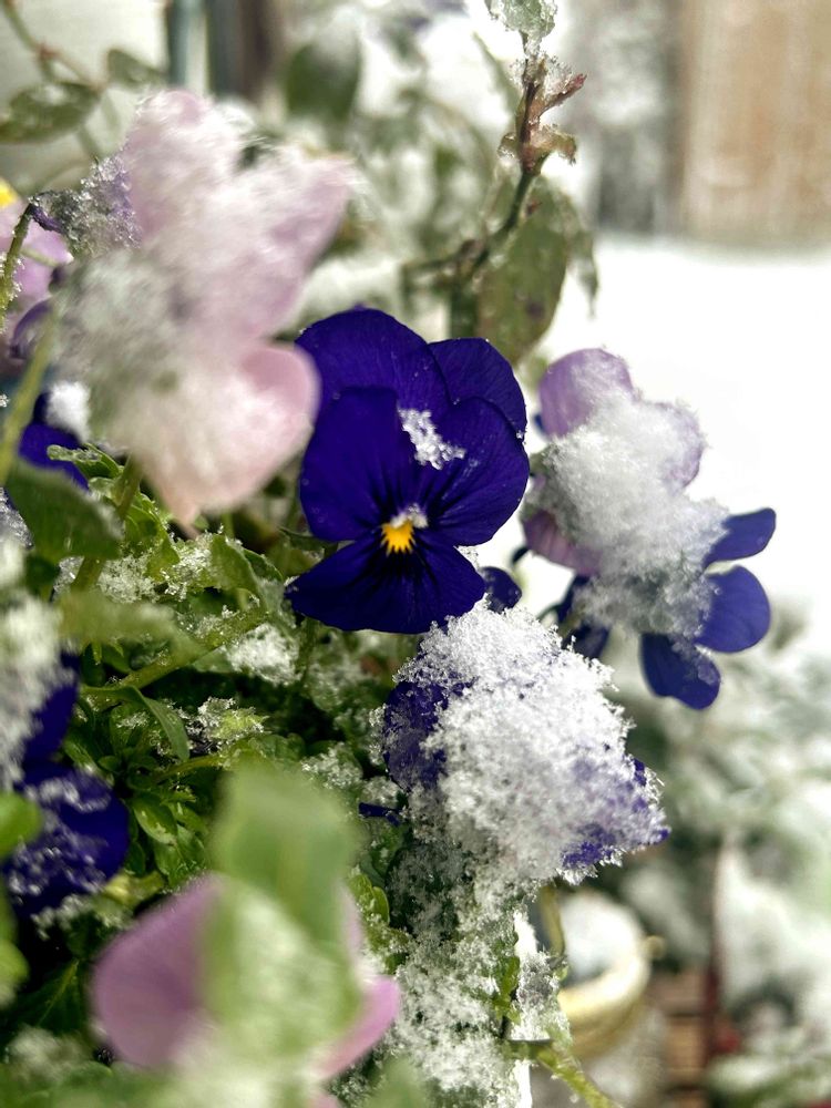 雪のベールを被ったパンジーさん