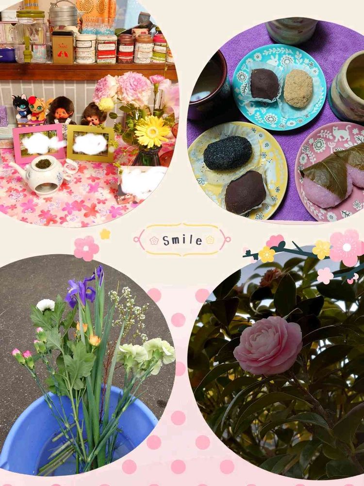 キャットニップさんの♡ピンクの椿♡,♡お供えしたお花♡,♡牡丹餅と道明寺♡の投稿画像