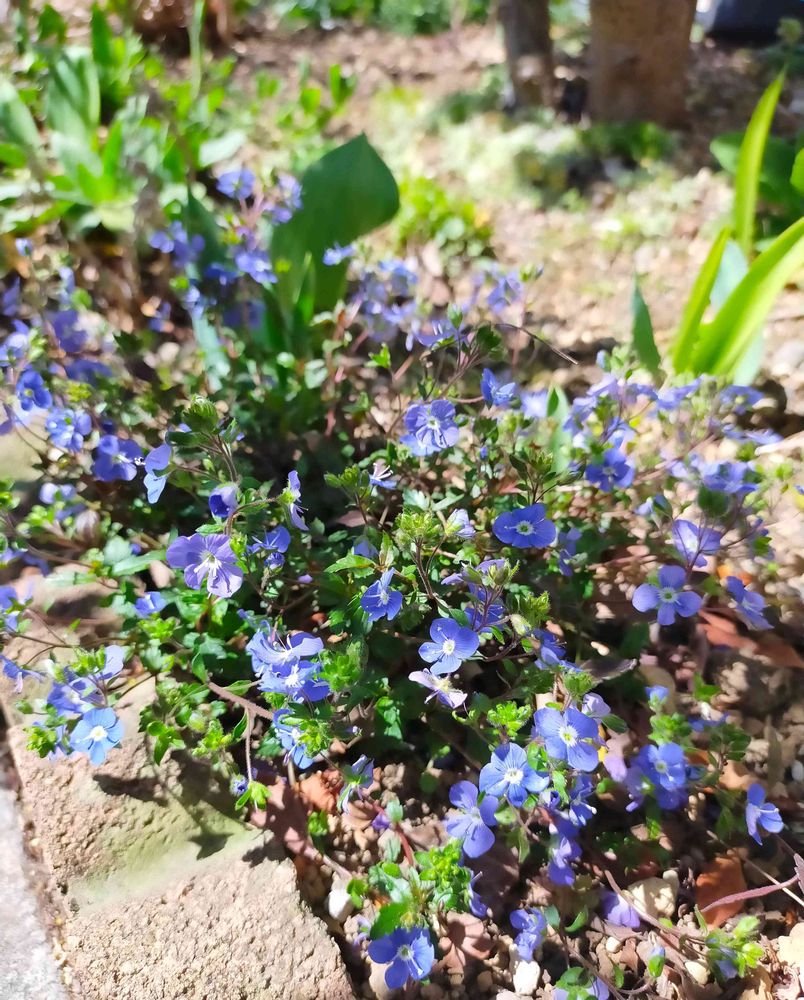 ベロニカ・オックスフォードブルーが、今年も咲いています✨青い小さな小花が点々と咲いて、カワイイです💕