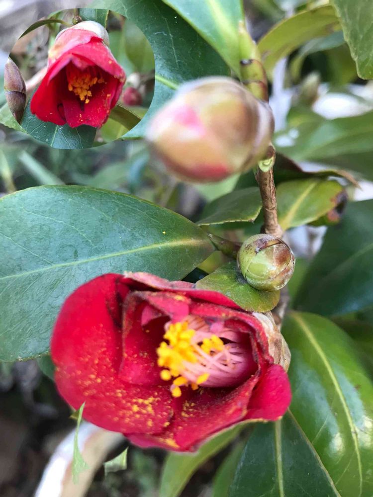 3年目の椿玉の浦が咲き始めましたが、翌日には、虫か?鳥に食べられました。残念です。