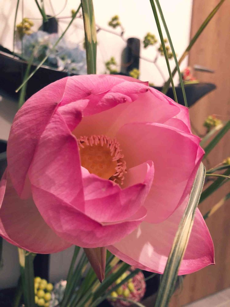 蓮の花はどうやったらリビングに飾れるのか。。。あれからすぐに散りました(//∇//)