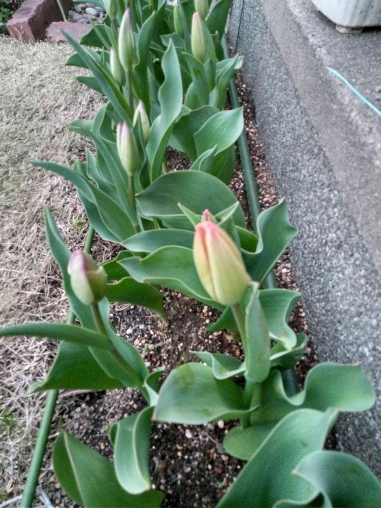 昨年新たに植えた一粒のチューリップの影で育ってきました〜