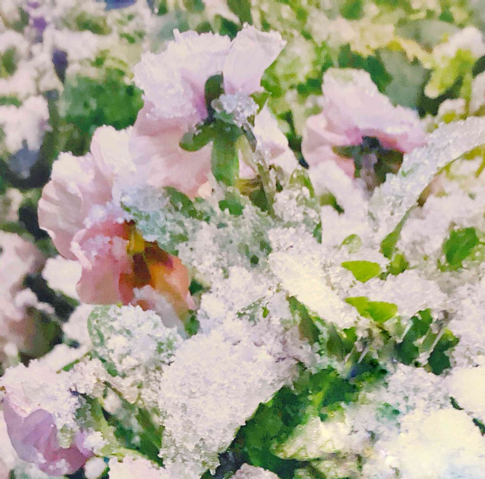 なごり雪でしょうかね。今年の冬は暖かいはずなのに、急に寒くなったりして、お花たちだけでなく、自分も身体に応えます。夕方ちょっと歩いてスーパーまで行きましたが、手袋してくればと後悔しました。