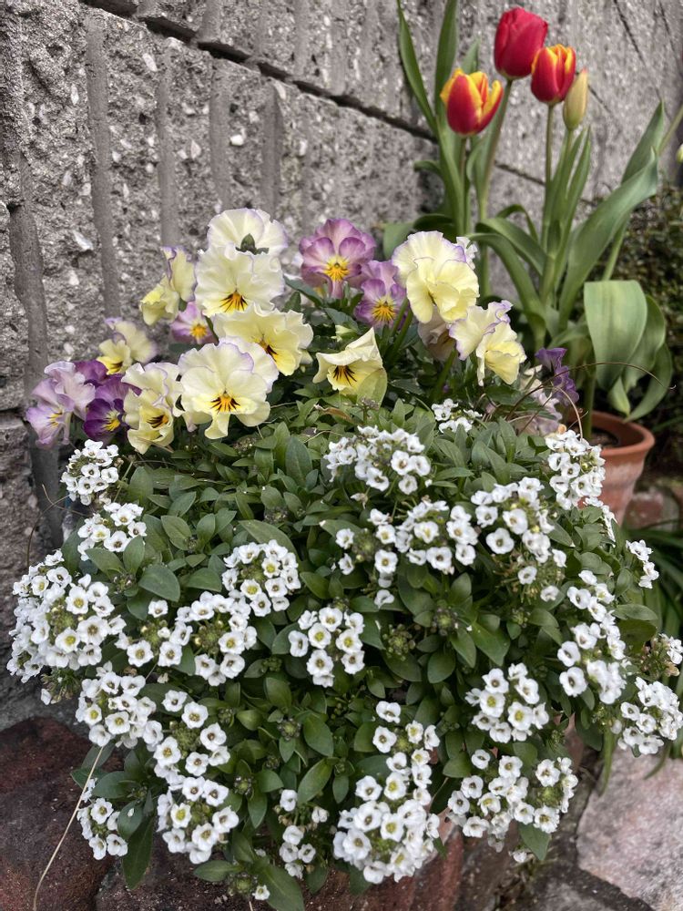 skmomさんのアリッサム,チューリップ,庭人さんビオラの投稿画像