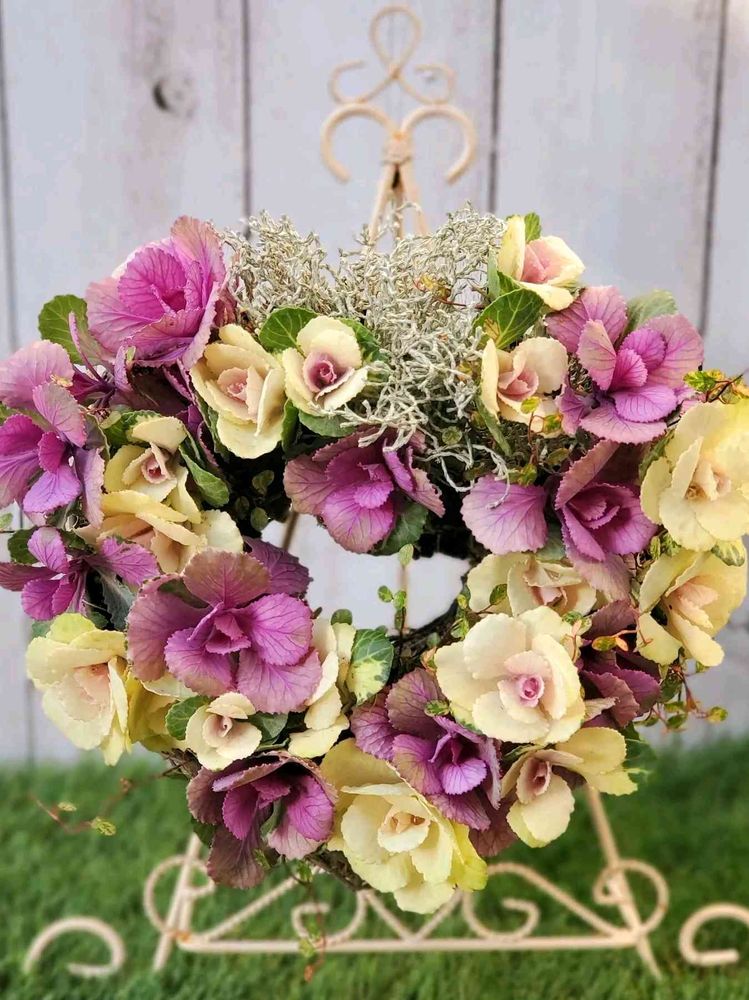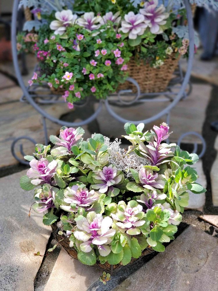 aki~nakさんの玄関アプローチ,冬越し中の寄せ植え,ミニ葉牡丹リースの投稿画像