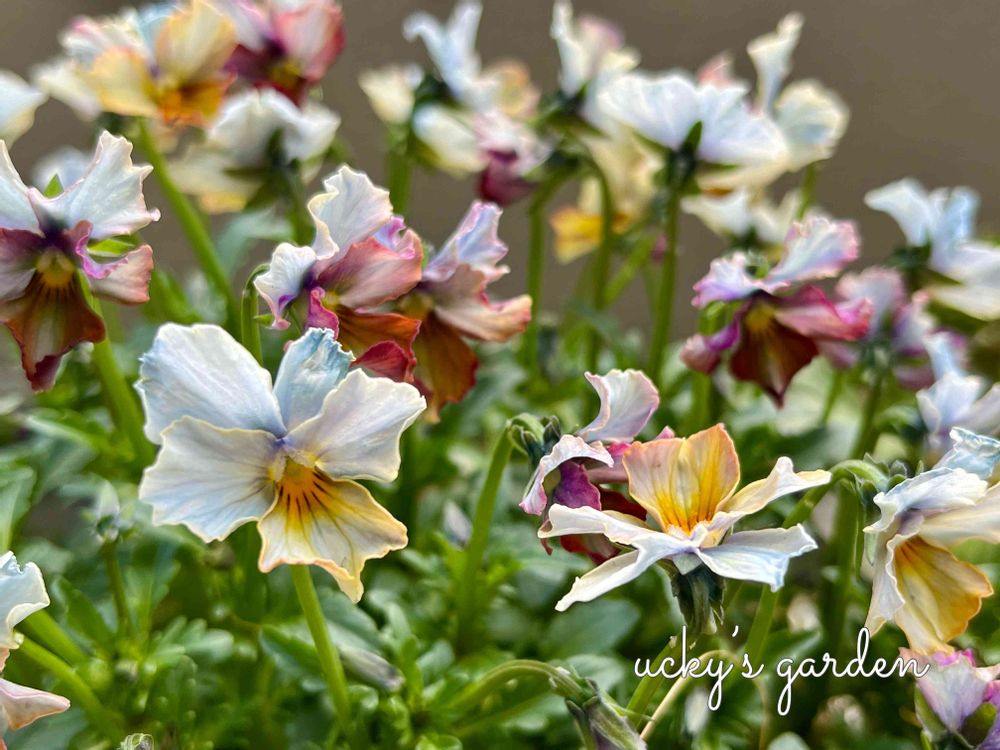 右の鉢の絵になるスミレも、横には咲いてるけどてっぺんに花がない😭