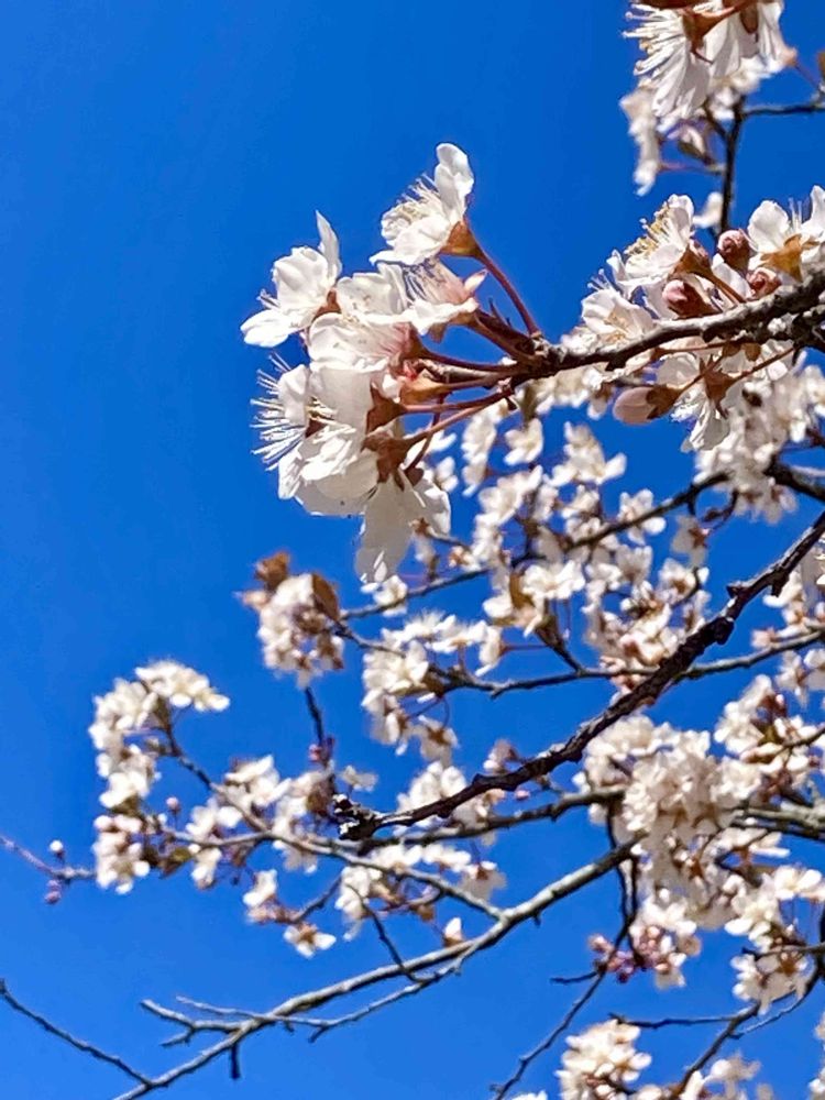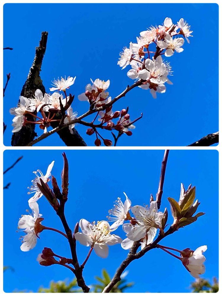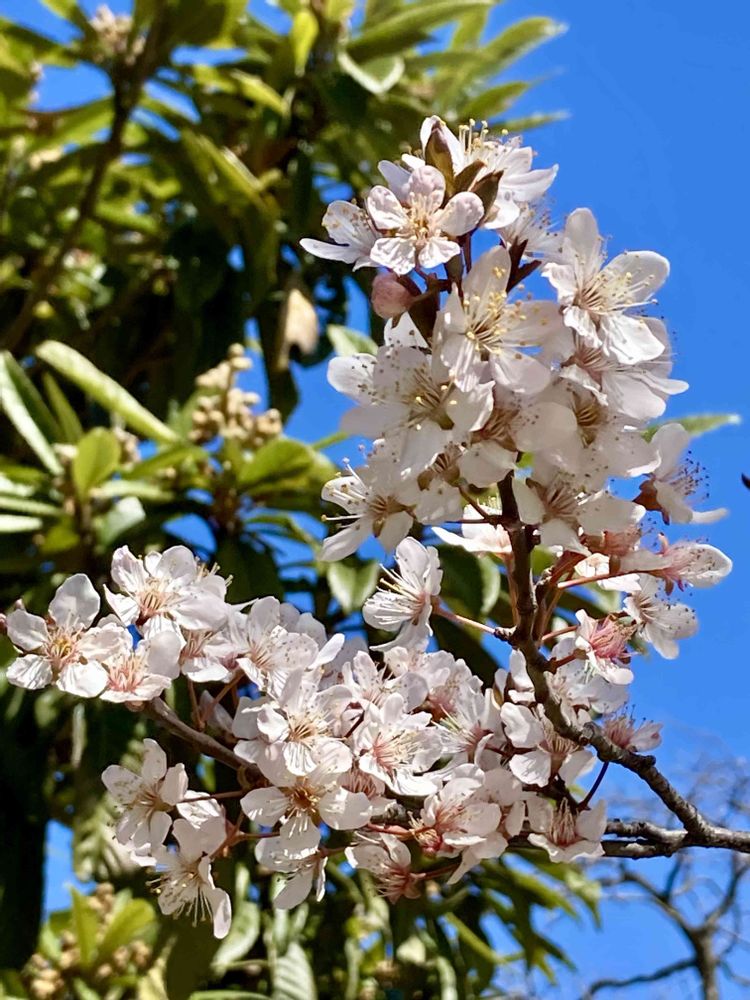 「アカバザクラ(ベニバスモモ)」の花がソメイヨシノよりひと足先に花盛り。