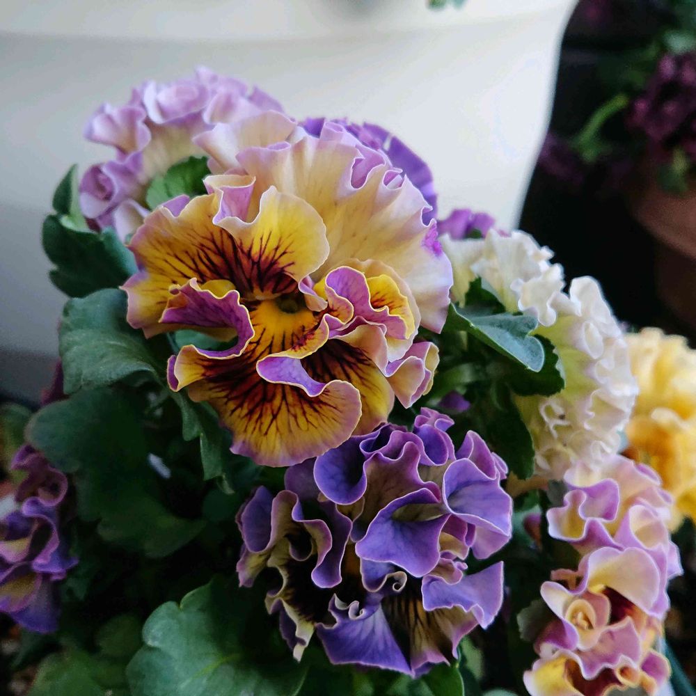 ひとつの株に少しずつ違う色の花が咲いています🤩