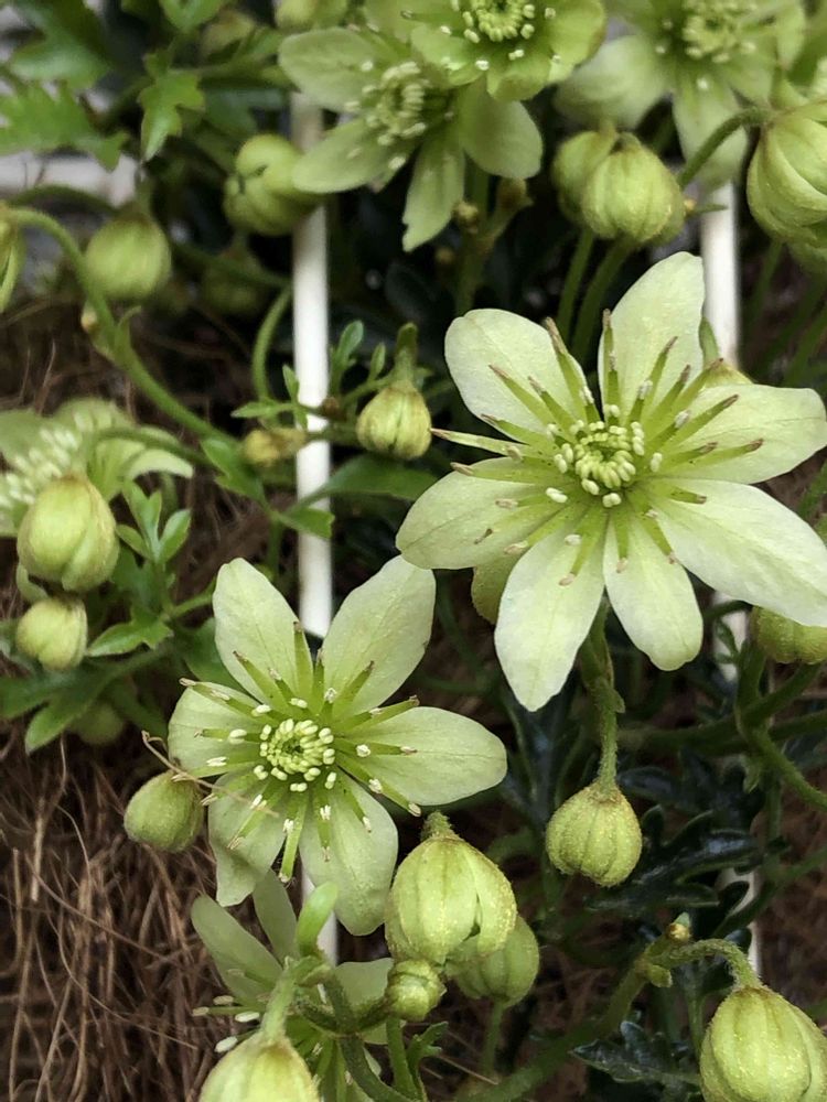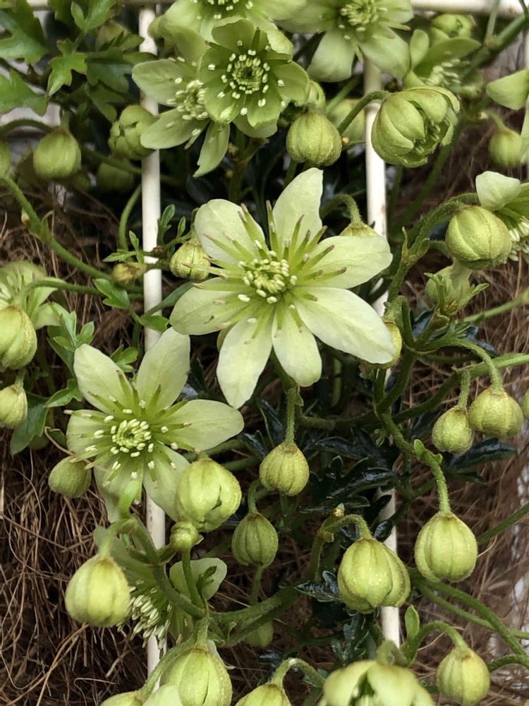 クレマチス ピクシーが咲き始めました♡ ダイソーのアイアン鳥かごに、入れてみましたよ 可愛い✨