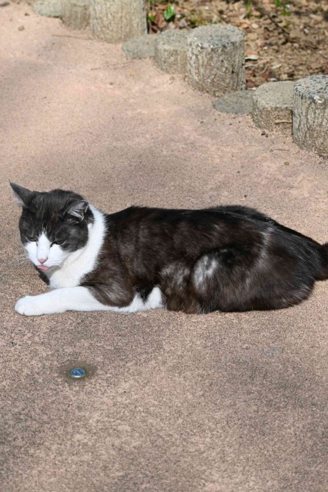 園内にいた毛並みの良い猫ちゃん、こっち向いて〜😍と追いかけたら、舌を出されました😸😜📷🏃♀